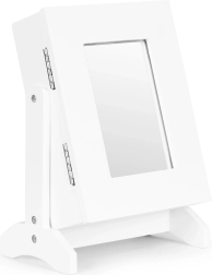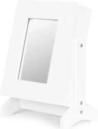 Ontdek een praktische sieradendoos die design en functionaliteit combineert. De compacte afmetingen maken plaatsing op een dressoir in de slaapkamer, in de badkamer of in de inloopkast mogelijk, terwijl de matte witte afwerking naadloos past in een modern interieur. De spiegel aan de buitenkant is ideaal voor het passen van sieraden en snel make-up bijwerken.