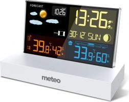 Houd overzicht over het weer en het binnenklimaat. Het station METEO SP110B toont in realtime de binnende en buitentemperatuur, de relatieve luchtvochtigheid, de luchtdruk en geeft een verwachting voor 12–24 uur weer met duidelijke pictogrammen. Dankzij DCF worden tijd en datum automatisch gesynchroniseerd en de wekker met snooze wekt je betrouwbaar.