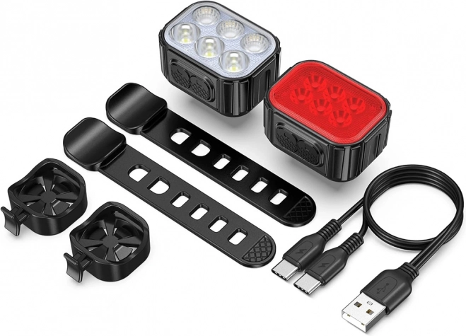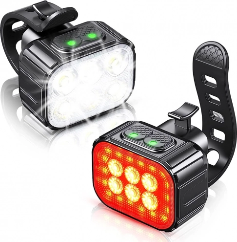 Deze set LED-fietsverlichting is ontworpen voor maximale veiligheid en comfort tijdens nachtelijke ritten. Bevat een voor- en achterlicht die hoge zichtbaarheid bieden en dankzij de duurzame constructie beschermd zijn tegen regen en andere weersinvloeden.