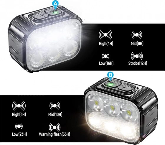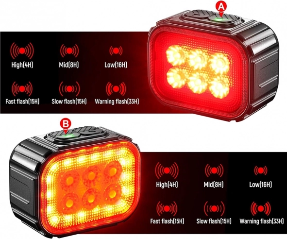 De set ondersteunt USB-opladen via elk apparaat met een USB-poort, wat zeer praktisch is. Het voorlicht heeft zes lichtstanden, net als het achterlicht, zodat je naar behoefte kunt aanpassen.