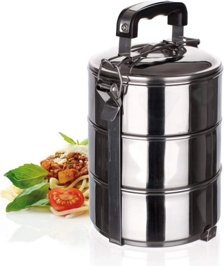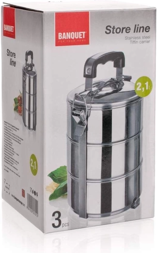De driedelige set voedseldozen STORY LINE is bedoeld voor het meenemen van etenswaren en kant-en-klare maaltijden. De set bevat 3 roestvrijstalen kommen met een diameter van 13 cm en een hoogte van 5,7 cm. Totale hoogte van de set 16,7 cm, materiaaldikte 0,5 mm.