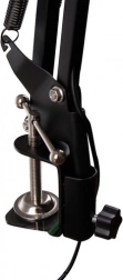 De robuuste tafelklem met schroef en veerscharnieren maakt precieze afstelling en stevige stabiliteit in de gekozen positie mogelijk.