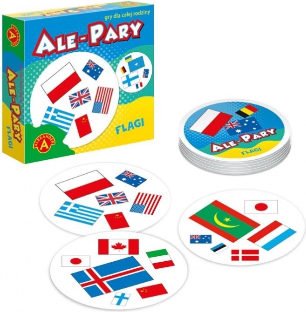 Ontdek het snelle en leuke spel Ale Pary – Vlaggen van Alexander, dat snelheid, observatie en kennis van wereldvlaggen combineert. Spelers zoeken naar identieke paren vlaggen en koppelen ze aan de juiste landen – ideaal voor familieavonden en leren door te spelen met kinderen vanaf 4 jaar.