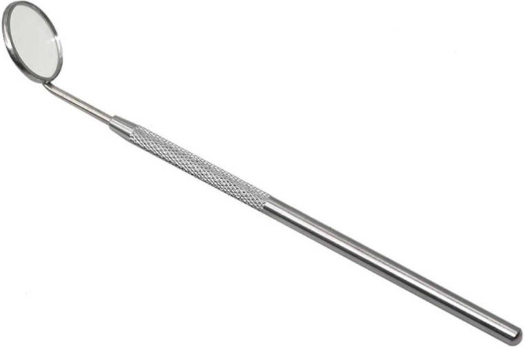 Professionele tandartsspiegel. Onmisbare uitrusting voor elke tandarts. Gemaakt van robuust roestvrij staal. Lange handgreep met grove grip voor gemakkelijk manoeuvreren tijdens het werk. Het verwisselbare vergrotende spiegeltje biedt een nauwkeurig overzicht van de toestand van mond en tanden.
