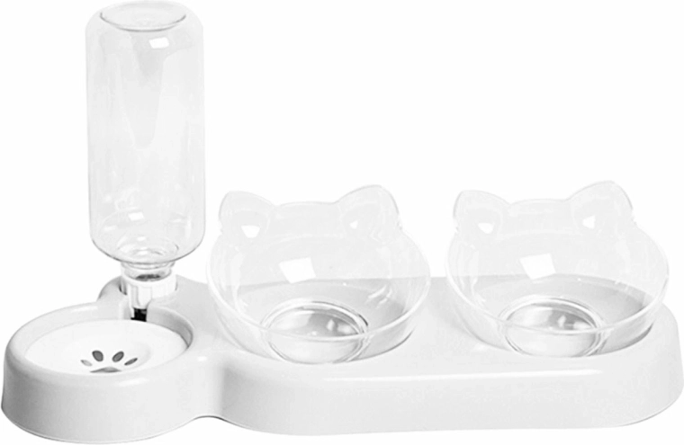 Automatische waterdispenser en voerbak voor katten. De kom is 15 graden gekanteld, wat het eten voor uw huisdier vergemakkelijkt. De waterfles van 0,5 l zorgt ervoor dat uw huisdier voortdurend vers water tot zijn beschikking heeft. Dankzij een speciaal ventiel vult het apparaat het water automatisch bij van het reservoir naar de kom. Het compacte ontwerp past goed in kleine keukens en gangen.