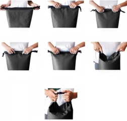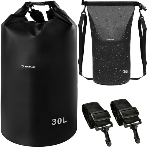 Praktische drybag met een inhoud van 30 liter, ideaal voor watersporten, kamperen, trips naar zee en de bergen. Het robuuste PVC‑materiaal is makkelijk te reinigen, kan tegen veeleisende omstandigheden en dankzij de rolsluiting met gesp sluit het de inhoud veilig af tegen regen, opspattend water en kortstondige onderdompeling.