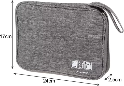 Geen in elkaar verstrengelde kabels of chaos op de bodem van je tas meer. Deze handige organizer combineert licht en duurzaam polyester met een praktische indeling, zodat je USB-kabels, opladers, oordopjes en adapters veilig en overzichtelijk kunt opbergen. De compacte afmetingen van 24 × 17 × 2,5 cm passen perfect in je tas of handbagage.