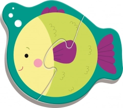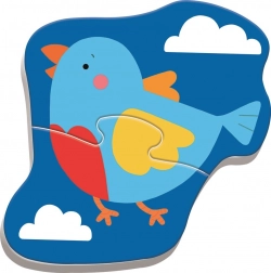 Elk van de 4 diertjes heeft slechts 2 grote stukken. Kinderen begrijpen het principe gemakkelijk en ervaren snel het plezier van een afgewerkt plaatje.