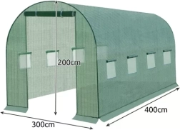 Sterke en scheurvaste folie is gemaakt van PE met ingeweven gaas. Bestemd voor een tuintunnel van 2 x 2 x 2 m. De montage is zeer eenvoudig, de foliedekking moet zo strak mogelijk aan het stalen frame worden bevestigd, waardoor de negatieve effecten van harde wind, regen en zon worden beperkt. De tunnelfolie heeft twee sterke ritsen. De ingang kan ook worden opgerold en vastgezet met een karabijnhaak. De zijramen zijn uitgerust met een muggengaas dat zorgt voor de juiste vochtigheid en luchtcirculatie in de tunnel. De zijflap voor stabilisatie moet met aarde worden bedekt of met stenen worden verzwaard. Zo wordt de tunnel beschermd tegen wind die de folie kan opwaaien. De tuinfolietunnel verlengt het groeiseizoen van groenten van het vroege voorjaar tot de late herfst. Biedt uitstekende resultaten bij de teelt van warmte minnende groenten zoals tomaten. Een praktische en goedkope oplossing voor gebruik in huis-tuinen.
