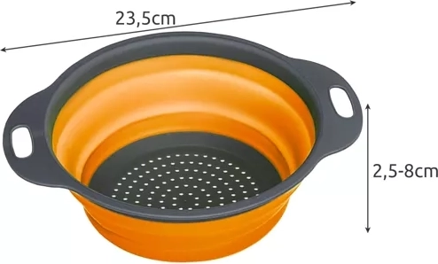 Geniet van maximale praktische inzetbaarheid met dit opvouwbare vergiet, dat u na gebruik eenvoudig tot een platte vorm indrukt en in een lade opbergt. Licht, duurzaam en stabiel – ideaal voor kleine keukens, caravan, vakantiehuis en kamperen.