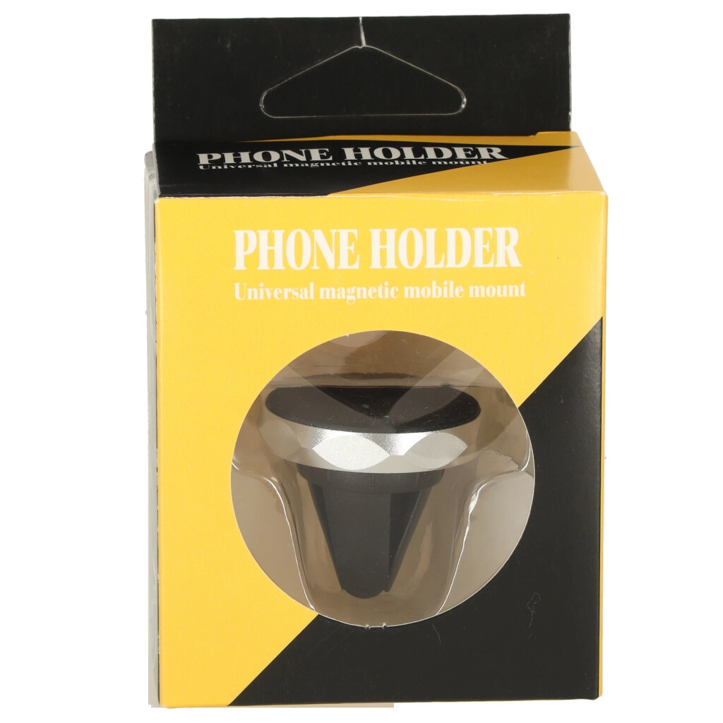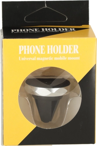 Universele magnetische telefoonhouder die eenvoudig in het ventilatierooster wordt bevestigd. Krachtige neodymiummagneten houden je telefoon stabiel, ook op oneffenheden, zonder de functies van het toestel te beïnvloeden. Dankzij de compacte afmetingen bespaart hij ruimte en past hij elegant in het interieur van elke auto.