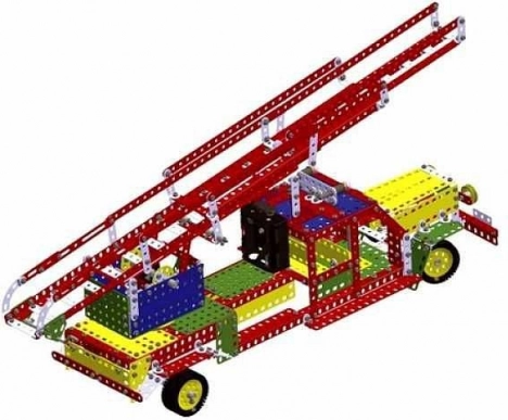 Speciale onderdelen en gedetailleerde instructies maken het mogelijk om een grote brandweerauto, een autokraan en andere realistische modellen te bouwen.