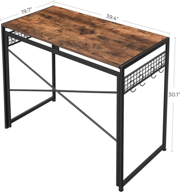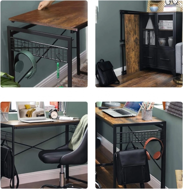 Geniet van een rustieke stijl met een stabiele constructie die plaats biedt aan een computer, monitor, geluidsset of lamp. Met 8 praktische haken heb je alles wat je nodig hebt binnen handbereik.