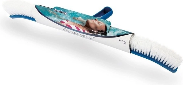 De betrouwbare BESTWAY Flowclear zwembadborstel is ontworpen voor snelle en efficiënte reiniging van bodem en wanden. De robuuste kunststof behuizing en dichte, stevige borstelharen pakken aanslag, vuil en groene algengroei aan, zodat het water kristalhelder blijft en veilig om in te zwemmen.