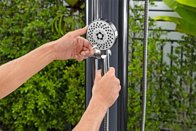 De praktische verstelbare douchekop maakt zowel vaste montage als gebruik in de hand mogelijk en biedt meerdere straalstanden. De eengreepsbediening zorgt voor comfortabele regeling van doorstroming en temperatuur. De duurzame constructie is ontworpen voor buitengebruik en eenvoudig onderhoud.