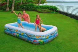 Geniet samen met de kinderen van waterpret in je eigen tuin! Het opblaasbare zwembad met een onderwaterwereldmotief biedt voldoende ruimte voor het hele gezin.