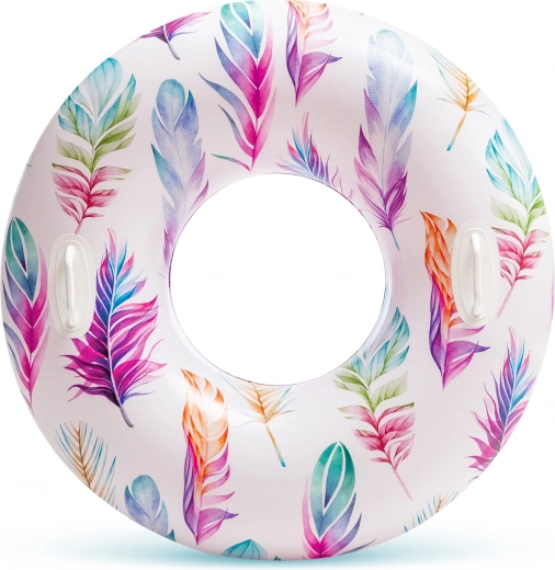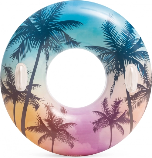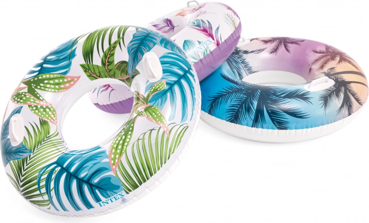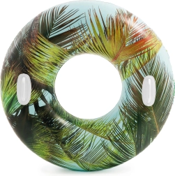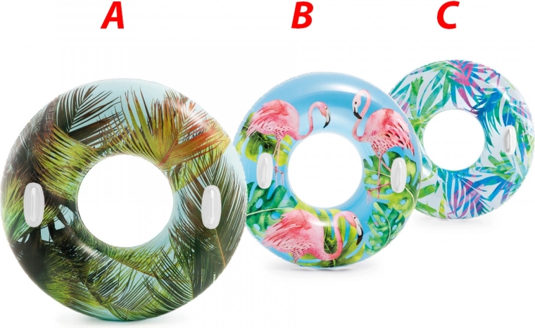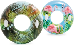 Het duurzame materiaal met een dikte van 0,25 mm weerstaat dagelijks gebruik bij het zwembad en aan zee. Dankzij de tropische motieven met palmen of flamingo’s trekt de ring de aandacht en geeft hij je zomerse uitrusting een frisse stijl.