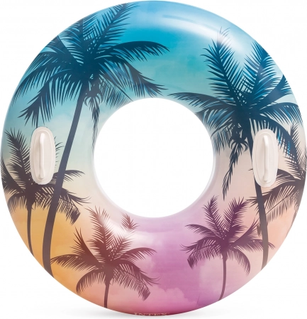 Geniet van de zomer met een opblaasbare zwemring met een diameter van 97 cm, twee handgrepen en een frisse tropische look. Diameter 97 cm, 2 stevige handgrepen, max. draagvermogen 80 kg en materiaaldikte 0,25 mm zorgen voor comfortabel en stabiel relaxen en plezier in het water. Keuze uit 2 aantrekkelijke motieven – palmbladeren of flamingo’s.