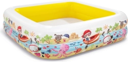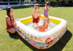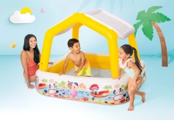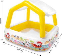 Het opblaasbare INTEX-zwembad met dak is ideaal voor verfrissing van kinderen in de tuin tijdens de zomer. De vierkante vorm met afmetingen 157 × 157 cm en een hoogte van 122 cm biedt volop ruimte om te spelen, terwijl de capaciteit van 280 l bij een waterniveau van 20 cm zorgt voor veilig en comfortabel plezier. Duurzaam vinyl (0,25 mm) en zachte opblaasbare wanden verhogen zowel comfort als veiligheid.