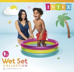 Het opblaasbare kinderzwembadje INTEX Rainbow is kleurrijk en praktisch voor zomerdagen. Dankzij de drie transparante ringen is het stabiel en comfortabel, terwijl de compacte afmetingen van 86 × 25 cm op de meeste tuinen, terrassen en balkons passen. De capaciteit van 68 liter bij de aanbevolen waterhoogte van 17 cm zorgt voor een veilige, ondiepe waterpartij voor peuters.