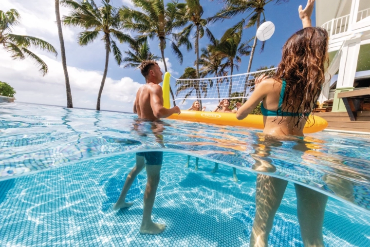 Het drijvende volleybalnet van INTEX brengt sportief plezier en beweging naar je zwembad. Robuust vinyl met een dikte van 0,25 mm en zijverstevigingen zorgen voor stabiliteit, terwijl verzwaringsankers de constructie op zijn plek houden, ook bij een sneller spel. In de set zit bovendien een opblaasbare bal, zodat je meteen kunt beginnen.