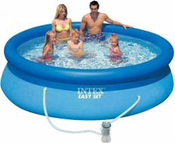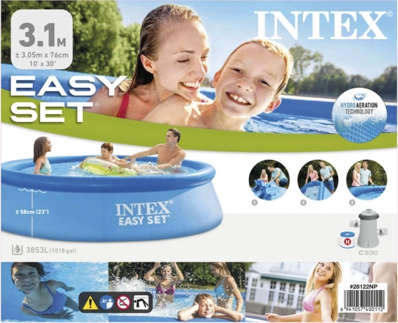 Het praktische bovengrondse INTEX Easy Set-zwembad is een ideale keuze voor de tuin – binnen enkele minuten klaar om te vullen, stabiel dankzij de opblaasbare rand en gemaakt van duurzaam drielaags PVC. Het volume van 3.853 liter biedt voldoende ruimte voor verfrissing voor het hele gezin.