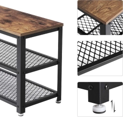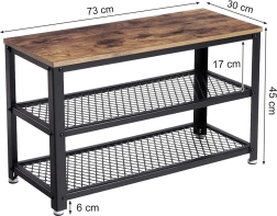 De elegante schoenenkast met bank is ideaal voor hal, gang, kantoor, receptie en winkel. De robuuste combinatie van metaal en spaanplaat zorgt voor een hoge weerstand tegen vocht en vervorming, terwijl de compacte afmetingen van 73 × 30 × 45 cm ruimte besparen en de organisatie verbeteren.
