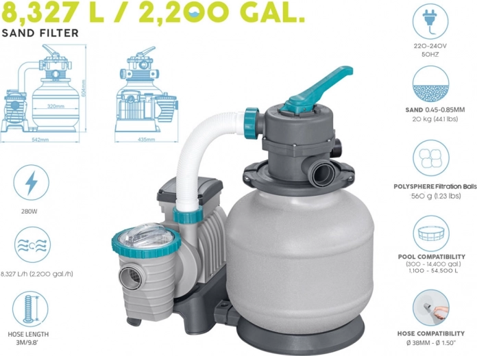 Bestway zandfilter is de ideale oplossing om het water in uw tuinzwembad schoon te houden. Deze zeer efficiënte pomp vervangt traditionele papieren filters en gebruikt zand of speciale filterkogels voor langdurige filtratie.