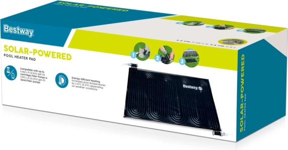 Stop met het verspillen van energie voor zwembadverwarming. Het zonnepaneel van Bestway bespaart u zorgen, tijd en geld. U hoeft het alleen maar aan te sluiten op uw filtersysteem en de zon doet de rest. Dit paneel verwarmt niet alleen het water aanzienlijk, maar is ook ecologisch en economisch.