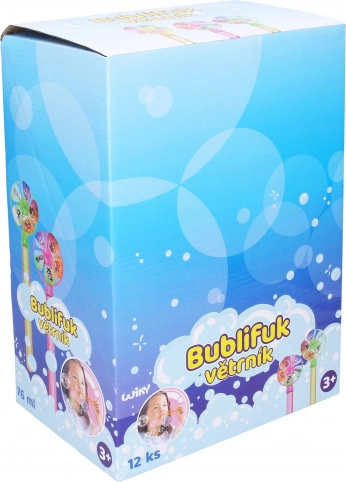 Bellenblaas met windmolletje 76 ml en 34 cm voor geweldig buitenspeelplezier. Tsjechische verpakking, drie kleuren. Maak grote bellen en doe wedstrijdjes met vrienden!