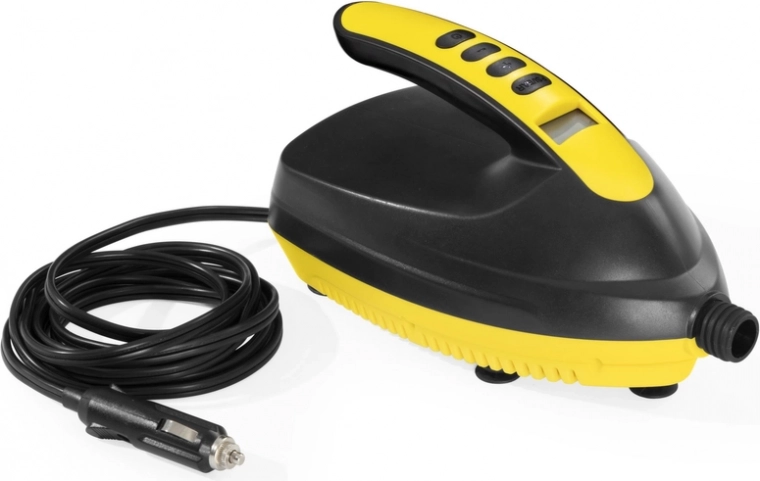 Compacte auto elektrische pomp 12 V van BESTWAY om snel een SUP, boot, zwemband of luchtmatras op te pompen. Dankzij de krachtige 110 W motor, het LCD-scherm en de nauwkeurige drukinstelling 0–16 PSI met automatische uitschakeling is het gebruik eenvoudig, veilig en comfortabel rechtstreeks via de 12V-aansluiting in de auto.