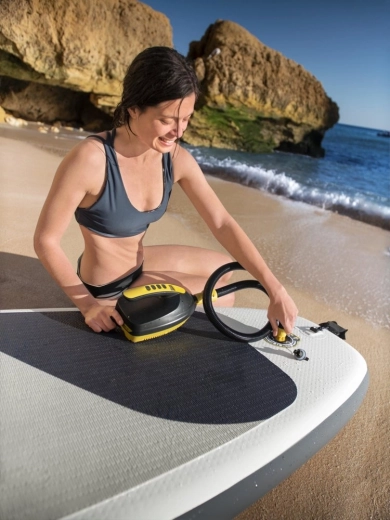 - Snelle inflatie 0–16 PSI – geschikt voor de meeste SUP’s en opblaasboten.