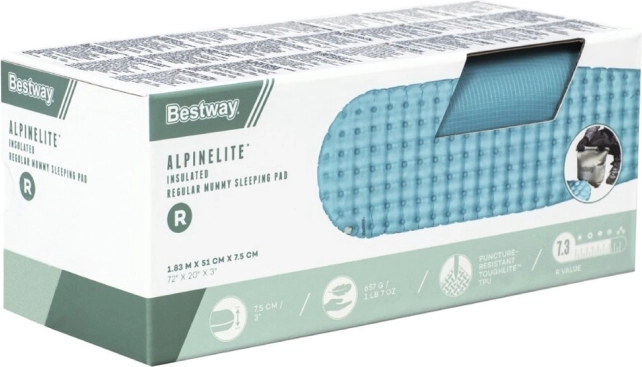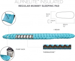 De AlpineLite Insulated Regular Mummy-slaapmat is de ideale keuze voor wie comfort wil tijdens relaxen op het strand, kamperen of overnachten buiten in een tent. Oppompen is eenvoudig en snel dankzij het innovatieve AirCinch™-systeem: druk met de handpalmen op de zak en de mat vult zich snel met lucht. Deze set is compleet, dus je hoeft niet bang te zijn dat je een pompje vergeet.