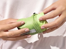 Het kussen kan eenvoudig worden opgevouwen en opgeborgen in de bijgeleverde tas, wat opbergen eenvoudig maakt.