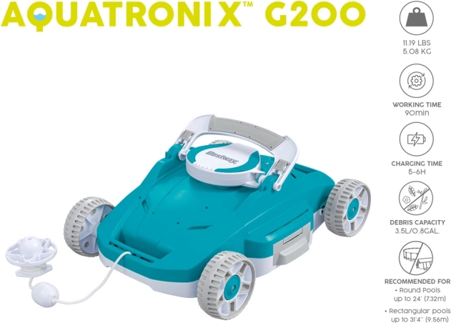 De automatische zwembadstofzuiger AquaTronix van het merk Bestway is de ideale oplossing voor zwembadeigenaren die waarde hechten aan gemak bij het onderhoud. De autonome constructie zorgt voor eenvoudige verzorging van helder en transparant zwemwater, wat jou en je kinderen een veilige en verfrissende zwemervaring garandeert tijdens warme dagen.