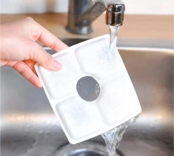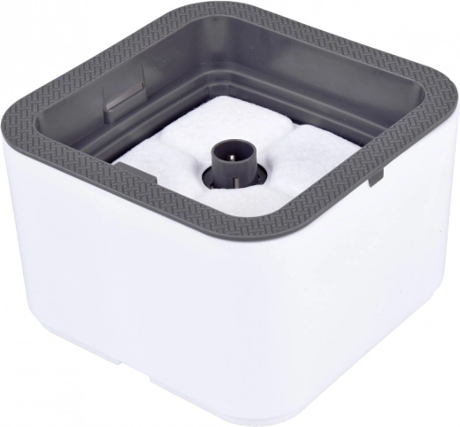 Voorfilter-spons, ionenwisselaarhars en actief kool verwijderen geurtjes en onzuiverheden. Vervangbare filters houden het water langdurig vers.