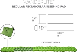 De opblaasbare slaapmat BESTWAY WanderLite Large is een betrouwbare metgezel voor kamperen, trekking en festivals. Dankzij de royale afmetingen van 198 × 71 × 6,5 cm past hij uitstekend bij een grotere slaapzak en biedt hij comfortabele isolatie en ondersteuning op oneffen ondergrond. De combinatie van ToughLite-materiaal en 70D ripstop-nylon zorgt voor hoge bestendigheid tegen slijtage en scheuren bij een laag gewicht.