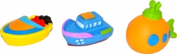 Deze schattige waterset brengt kinderen veel plezier tijdens het baden. De twee bootjes en de duikboot zijn gemaakt van zachte rubber die prettig aanvoelt en veilig is, ook voor de allerkleinsten. Dankzij het compacte formaat van 8 cm zijn de speeltjes gemakkelijk vast te houden en perfect voor de eerste ontdekkingen in het water.