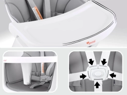 Ergonomische zitting, ademende en eenvoudig te reinigen bekleding, 5-puntsgordels en een antislipbeugel tegen wegglijden. Antislip pootjes zorgen voor stabiliteit op elk oppervlak.