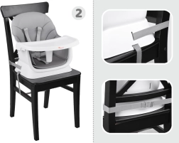 Deze multifunctionele 6-in-1 stoel is ideaal voor de eerste hapjes en het dagelijkse eten. Dankzij het doordachte ontwerp pas je hem eenvoudig aan de groei van je kind en aan diverse situaties aan – van eten aan tafel tot spelen en knutselen. Het afneembare blad kun je snel afspoelen onder de kraan of in de vaatwasser reinigen, de bekleding is ademend en makkelijk schoon te houden.