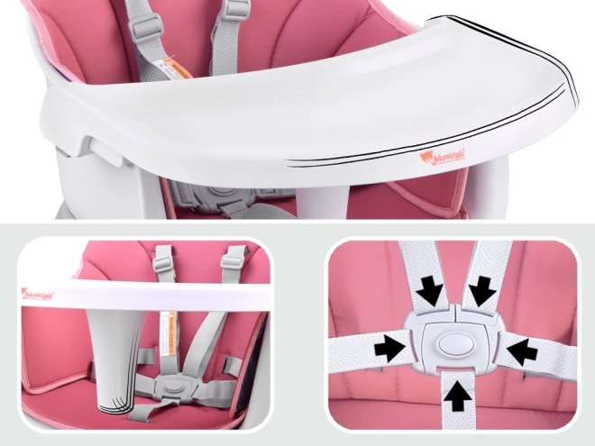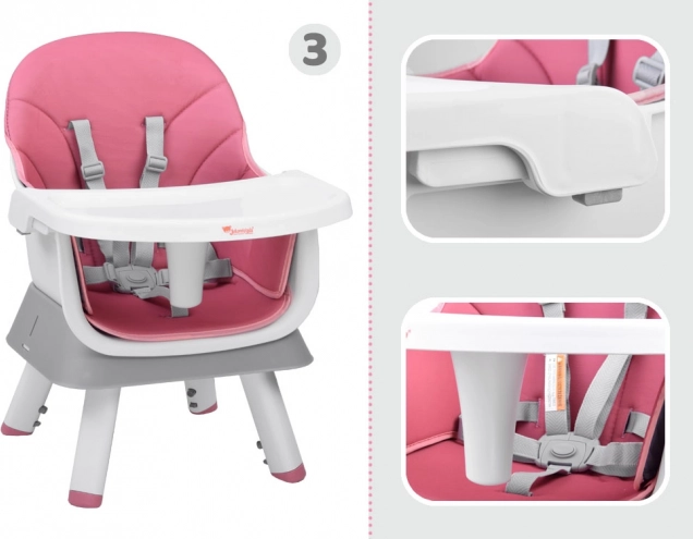 Multifunctionele kinder-eetstoel 6-in-1 voor kinderen vanaf 6 maanden groeit mee met je kind. Biedt hoog en laag zitten, een opzet voor de eetstoel, een speeltafel en een krukje. Heeft 5-puntsgordels, een afneembaar en gemakkelijk afwasbaar blad, antislipvoetjes en een onderhoudsvriendelijke ademende bekleding.