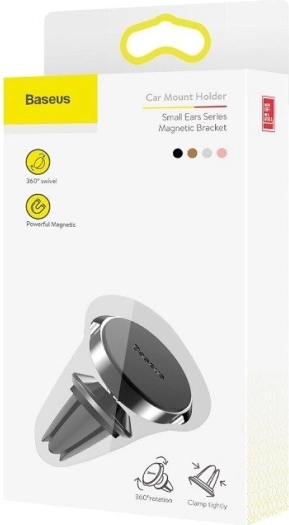 BASEUS Small Ears is een stijlvolle en onopvallende magnetische telefoonhouder voor in de auto die je eenvoudig in het ventilatierooster schuift. Plaats het metalen plaatje onder het telefoonhoesje of plak het op de achterkant van het toestel en de telefoon blijft stevig zitten dankzij de sterke magneet. De combinatie van aluminium en hoogwaardig rubber zorgt voor duurzaamheid en een zachte, roostervriendelijke bevestiging zonder beschadiging.