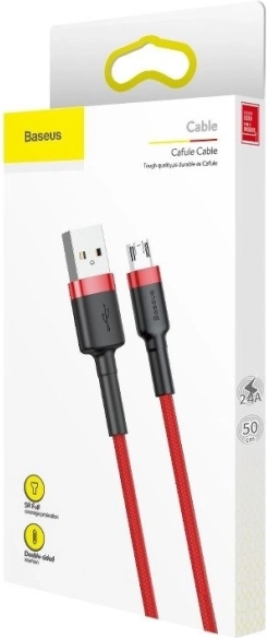 De BASEUS Cafule-kabel is een betrouwbaar accessoire voor dagelijks opladen en gegevensoverdracht van alle apparaten met een micro-USB-connector. Dankzij de duurzame textiele vlecht, versterkte connectoren en beschermende elementen is hij bestand tegen frequent gebruik, ook onder zwaardere omstandigheden. Compatibel met snel opladen tot 1,5 A en datasnelheden tot 480 Mb/s.