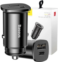 Houd je apparaten altijd klaar voor actie. De Baseus Square is een robuuste metalen autolader van 30 W met dubbele uitgang USB-A + USB-C. Dankzij de brede ondersteuning van snellaadprotocollen zorgt hij voor stabiele en veilige energieaanvulling, zelfs tijdens korte ritten.