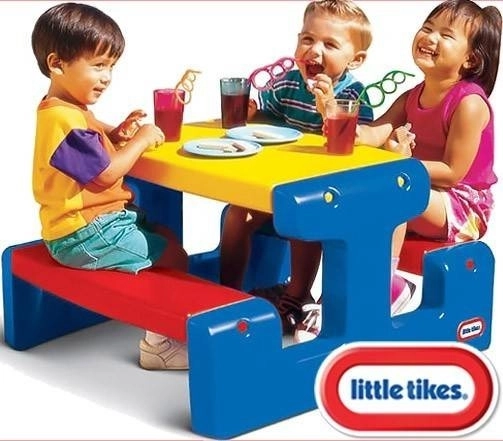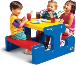 De kinderpicknicktafel LITTLE TIKES Jr met bankjes biedt een praktische en stijlvolle oplossing voor buitenspeelplezier. Dankzij de compacte afmetingen past hij op een balkon, terras of in een kleinere tuin, terwijl hij toch genoeg ruimte biedt voor vier kinderen. Het duurzame materiaal is bestand tegen dagelijks gebruik en weersinvloeden, terwijl het gemakkelijk afwasbare oppervlak snel onderhoud garandeert.