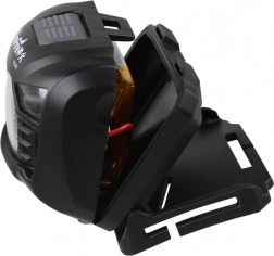 De geïntegreerde accu van 1200 mAh laad je eenvoudig op via micro-USB met een powerbank, oplader of computer. De hoofdlamp biedt 5 verlichtingsstanden, waaronder wit licht (sterk/zwak/SOS) en rood licht (continu/SOS) voor betere zichtbaarheid en signalering. De behuizing met IP44-bescherming weerstaat regen en spatwater, en de verstelbare kop met 60° maakt het richten van de bundel eenvoudig.