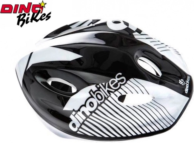 Kinderfietshelm Dino Bikes in een zwart-wit-zilveren combinatie zorgt voor maximale veiligheid en comfort tijdens het fietsen. Het is lichtgewicht, weegt slechts 220 g en bevat 5 ventilatieopeningen voor optimale luchttoevoer.