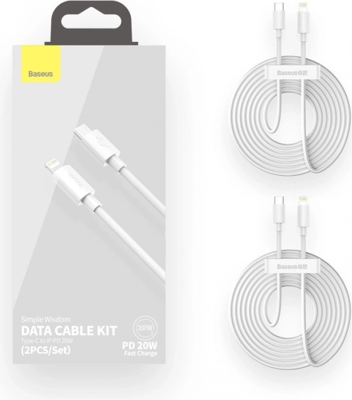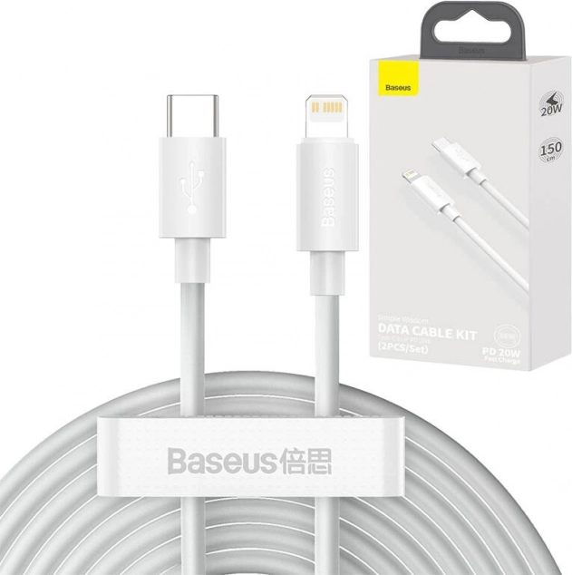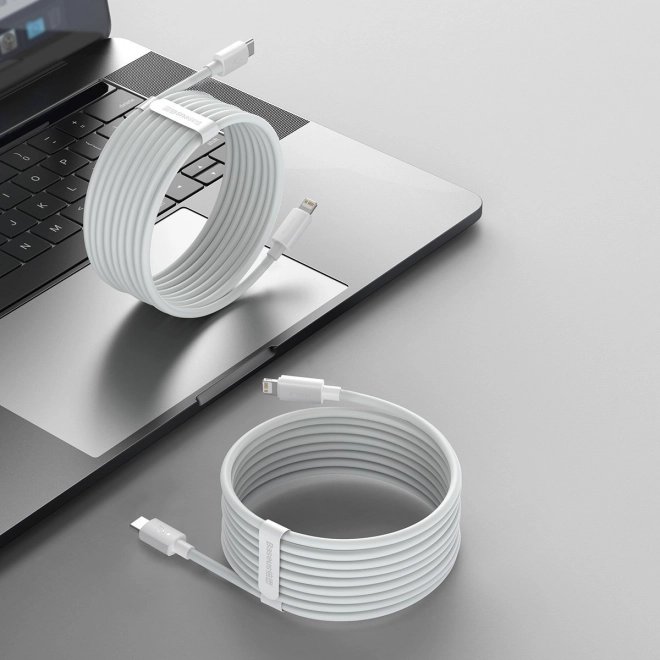 Deze praktische BASEUS-set bevat twee USB‑C naar Lightning-kabels met ondersteuning voor PD 20 W voor snel en veilig opladen van iPhones en andere apparaten met een Lightning-connector. Dankzij de lengte van 1,5 m heb je meer vrijheid om je telefoon te gebruiken tijdens het opladen, thuis, op kantoor en onderweg.