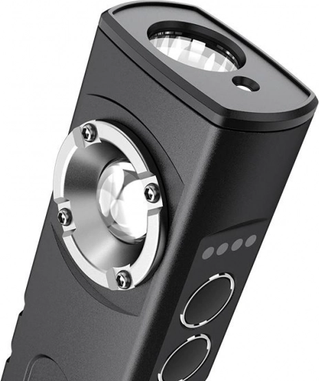 Deze zaklamp is uitgerust met een rode laser, wat hem ideaal maakt als aanwijzer bij lezingen of presentaties. De batterij kan eenvoudig worden opgeladen met een USB-kabel en het apparaat kan ook dienen als powerbank voor het opladen van mobiele telefoons.