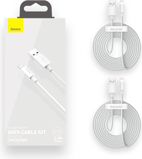 De set van USB naar Lightning Baseus Simple Wisdom datakabels is de ideale oplossing voor alle Apple-gebruikers. Kabels met een lengte van 1,5 m en ondersteuning tot 2,4 A zijn ontworpen voor snel en efficiënt opladen.